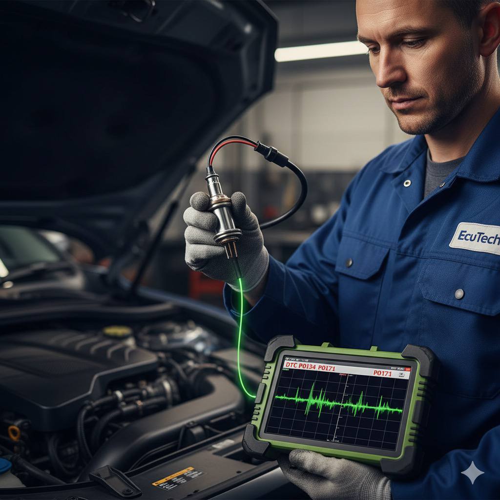 در سنسورهای نسل قبل (زیرکونیا/Narrowband)، سیگنال باید در حالت موتور گرم و دور حدود 2500rpm، به سرعت بین 100mV (رقیق) تا 900mV (غلیظ) نوسان کند. اگر این نوسانات کمتر از ۸ بار در ۱۰ ثانیه باشد، سنسور کند شده و نیاز به تعویض دارد. در سنسورهای جدیدتر (وایدباند/A/F Sensor)، باید پارامتر Lambda Current را در دیاگ مشاهده کرد. جریان مثبت در این سنسورها نشاندهنده ترکیب رقیق و جریان منفی نشاندهنده ترکیب غلیظ است.