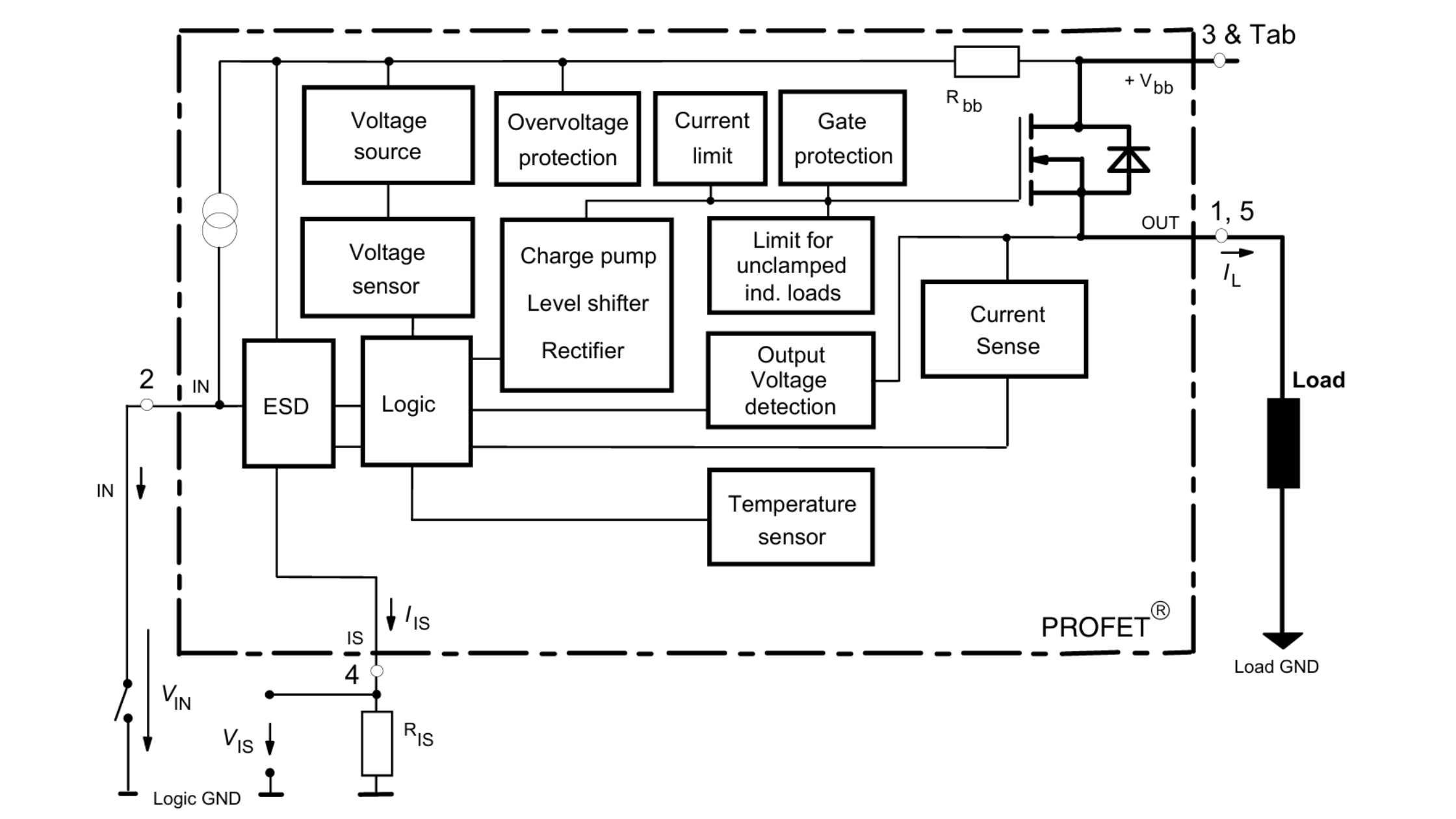 پایه 4 (IS): پایه سنس جریان (Current Sense). این پایه بسیار مهم است. آیسی از این طریق فیدبک جریان خروجی را به میکروکنترلر میدهد تا میکرو بفهمد مصرفکننده (مثلاً لامپ) سالم است یا سوخته.